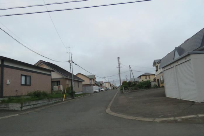 産岸通りから左折して西5号線のバス停前から北光通り交差点方向