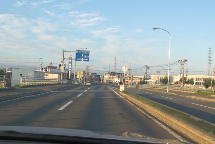 とん田通り、無加川橋を渡り錦町の南岸通り交差点