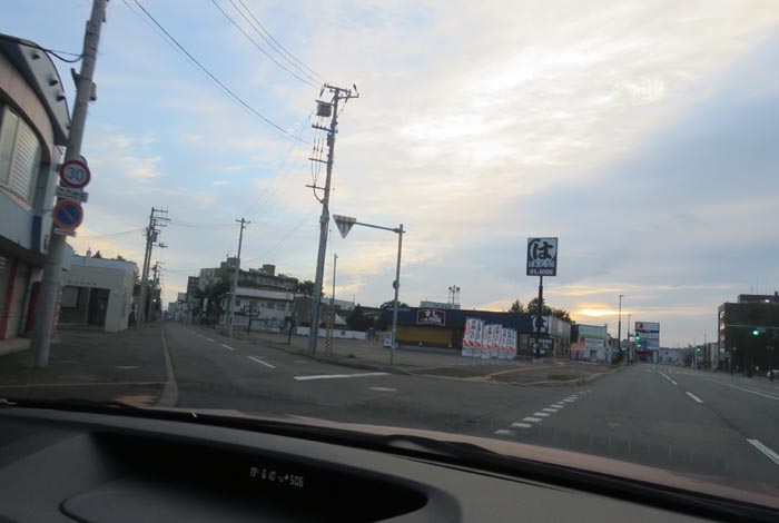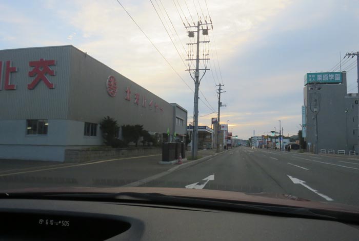 末広町の南岸通り、西4号線バス停前から野付牛自動車学校方向