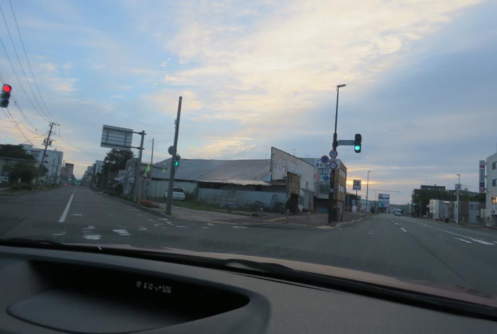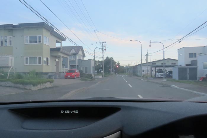 南岸通り、野付牛自動車学校前、前方はとん田通りの交差点