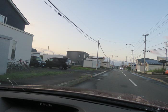 産岸通りから左折して西5号線のバス停前から北光通り交差点方向