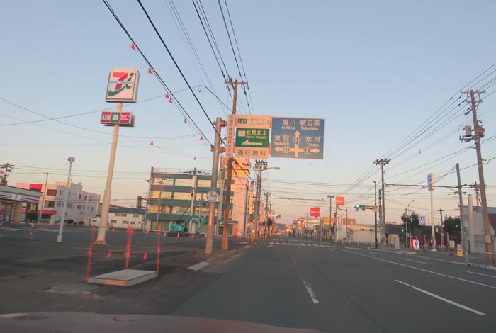 午前5時00分、北4条通りの国道39号交差点を右折で緑園通り方向