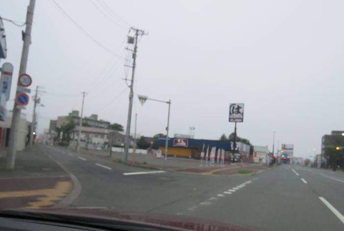 末広町の南岸通り、西4号線バス停前から野付牛自動車学校方向