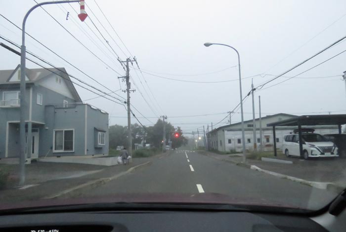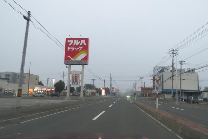 南岸通り、野付牛自動車学校前、前方はとん田通りの交差点