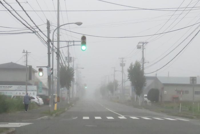午前5時10分、南岸通り、野付牛自動車学校前から無加川町方向