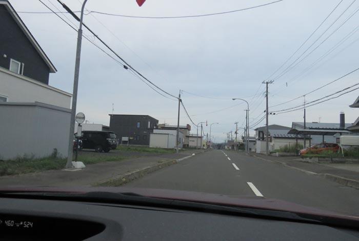 産岸通りから左折して西5号線のバス停前から北光通り交差点方向