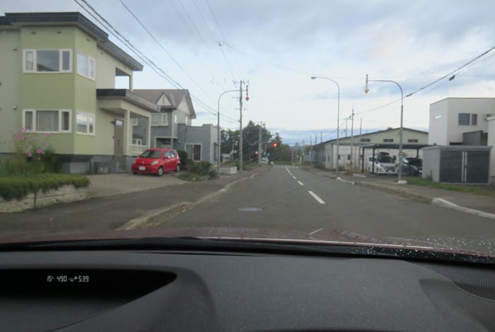 末広町の南岸通り、西4号線バス停前から野付牛自動車学校方向