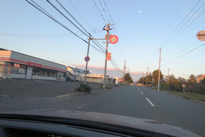 午前5時30分、南岸通り、野付牛自動車学校前から無加川町方向