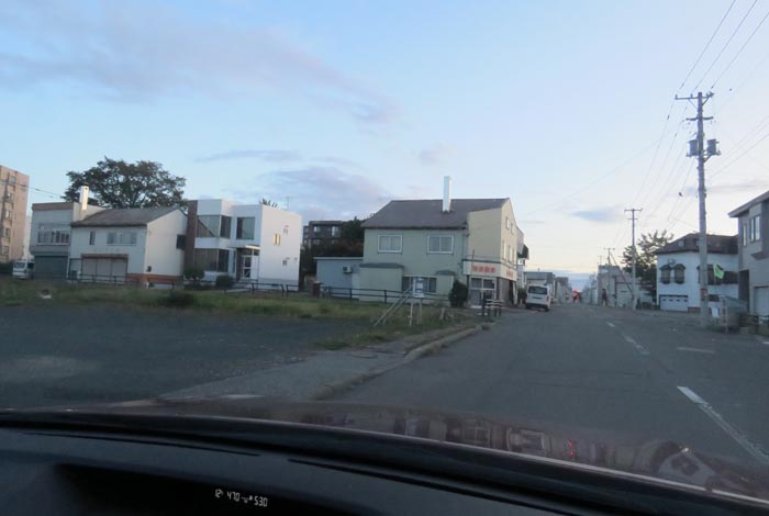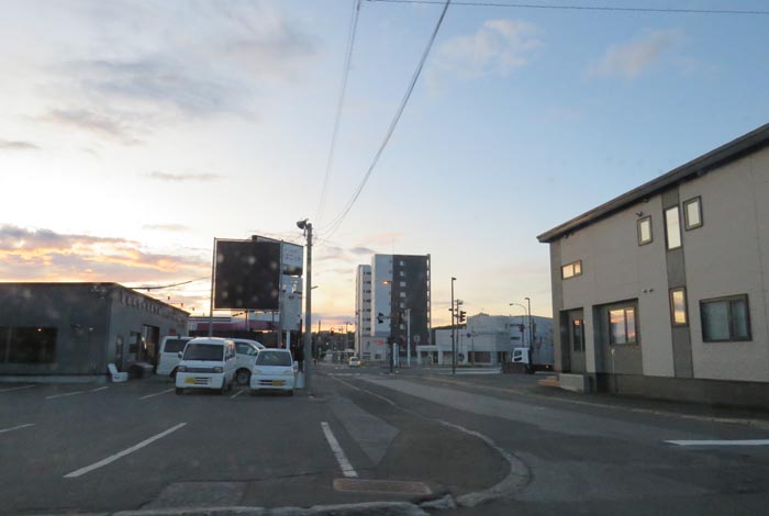 交差点を右折すると国道39号との交差点、奥が南仲町方面へ行く跨線橋