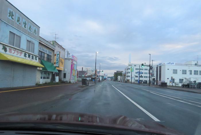 末広町の南岸通り、西4号線バス停前から野付牛自動車学校方向