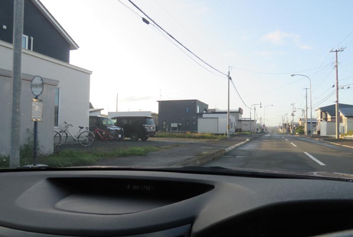産岸通りから左折して西5号線のバス停前から北光通り交差点方向