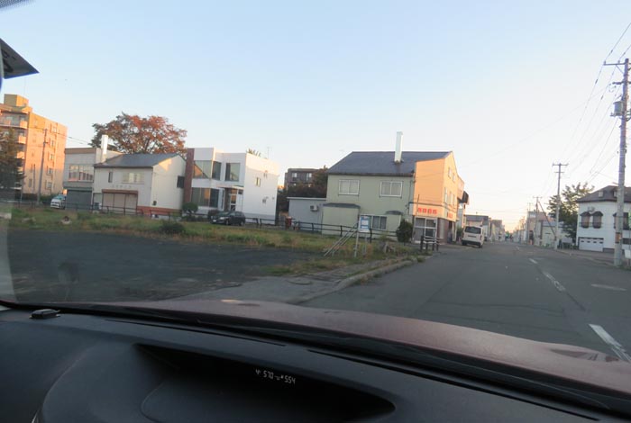 交差点を右折すると国道39号との交差点、奥が南仲町方面へ行く跨線橋