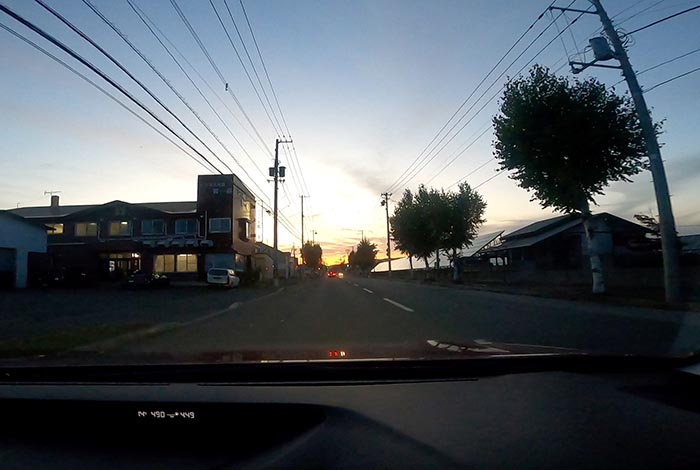 午後5時00分、南岸通り、野付牛自動車学校前から無加川町方向
