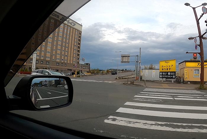 午後4時10分、国道39号の五差路から左は石北峠・旭川・札幌方面