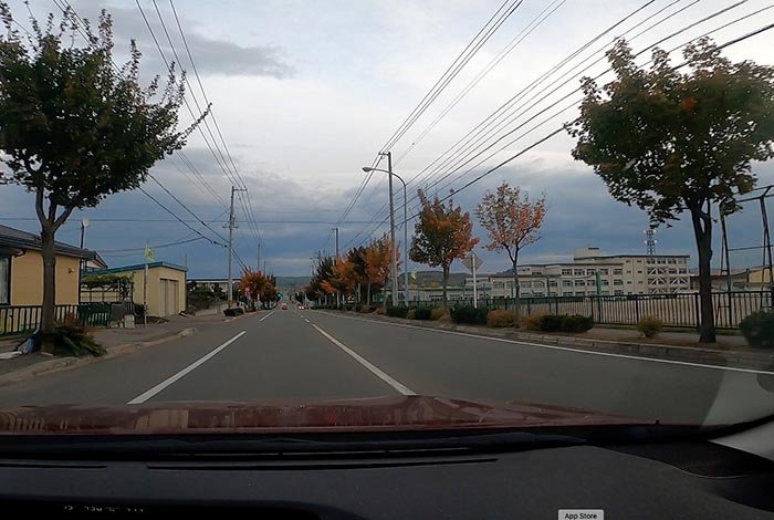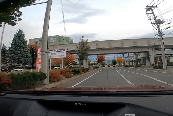 昭和通りの小泉中学校グラウンド角の交差点から北見大橋方向