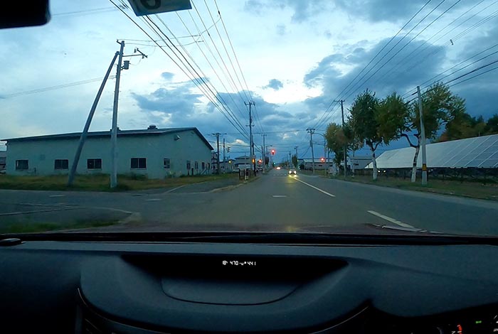 午後4時40分、南岸通り、野付牛自動車学校前から無加川町方向