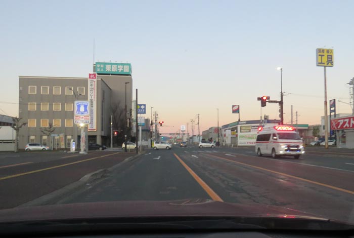 午前5時50分、北4条通りの国道39号交差点を右折で緑園通り方向