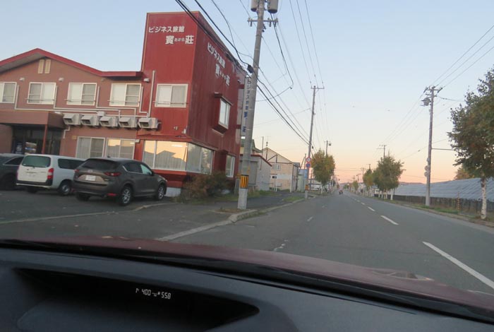 午前5時50分、南岸通り、野付牛自動車学校前から無加川町方向