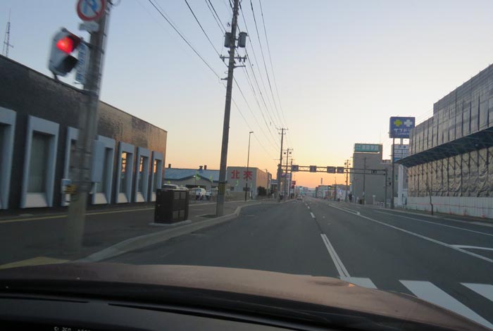 南岸通り、とん田通りの交差点から右は北光神社方向