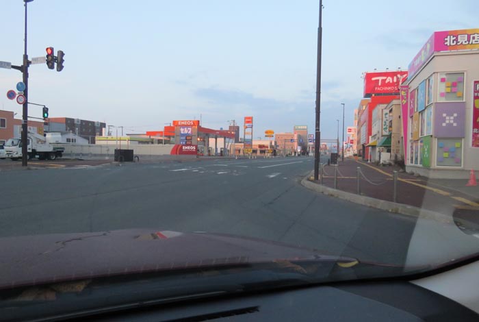 午前5時50分、北4条通りの国道39号交差点を右折で緑園通り方向