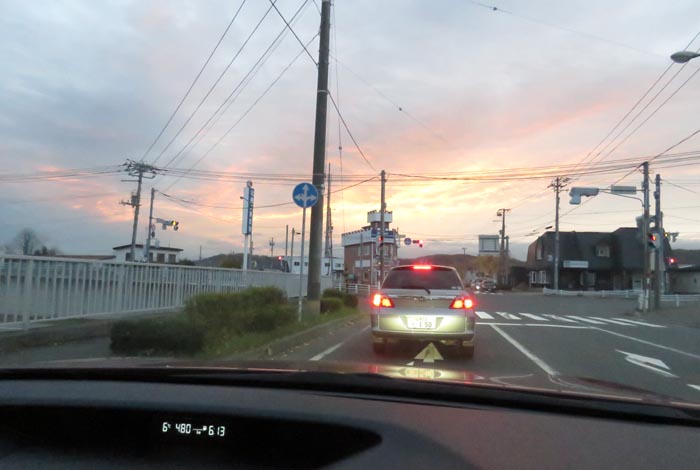 南岸通り、野付牛自動車学校前、前方はとん田通りの交差点