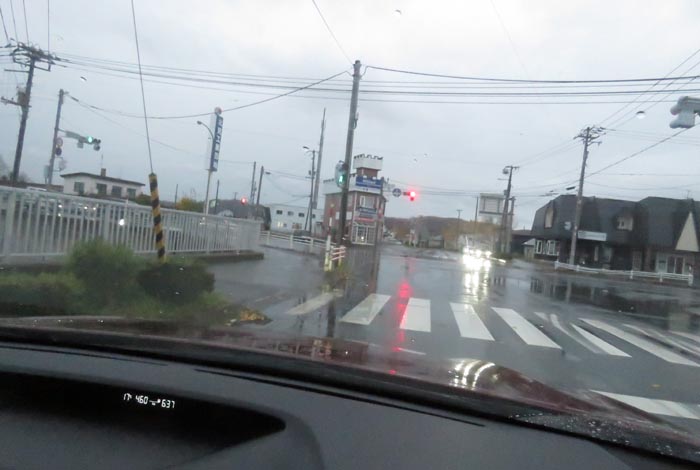南岸通り、野付牛自動車学校前、前方はとん田通りの交差点