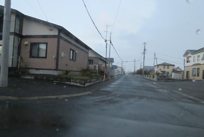 産岸通りから左折して西5号線のバス停前から北光通り交差点方向