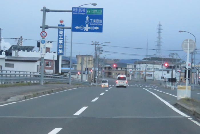 とん田通り、無加川橋を渡り錦町の南岸通り交差点