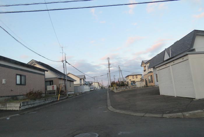 産岸通りから左折して西5号線のバス停前から北光通り交差点方向