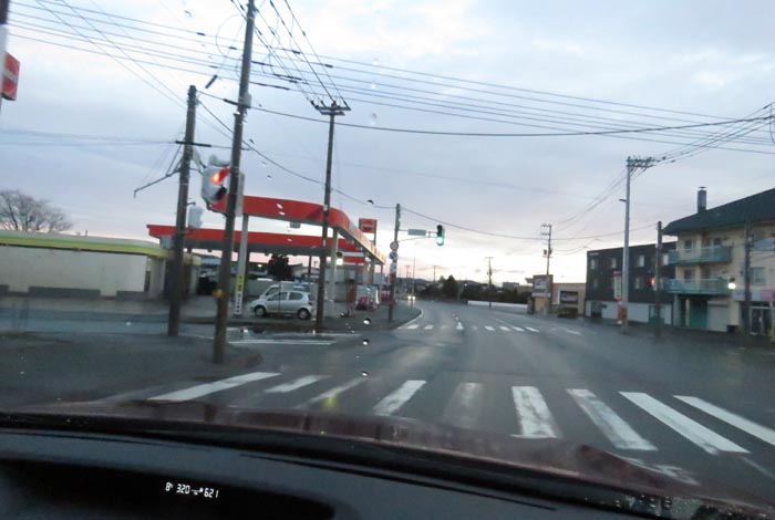 南岸通り、野付牛自動車学校前、前方はとん田通りの交差点