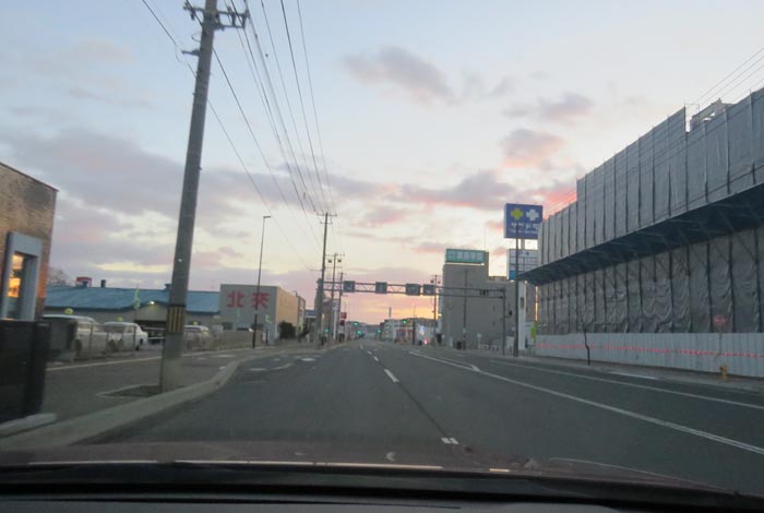 南岸通り、とん田通りの交差点から右は北光神社方向