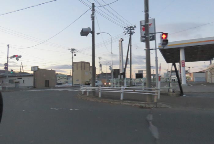 南岸通り、野付牛自動車学校前、前方はとん田通りの交差点