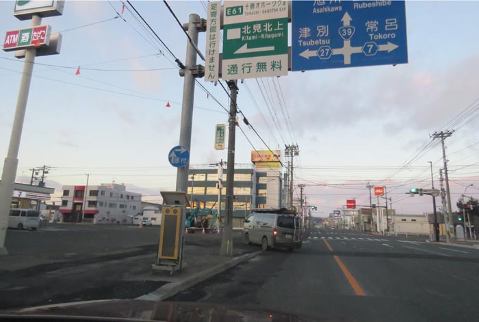国道39号、北見トヨペット前からとん田通り交差点方向
