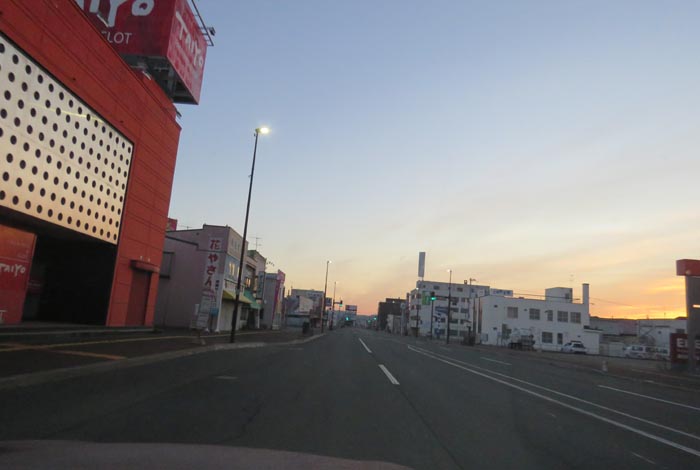 午前6時20分、西5号線、前方は南岸通り交差点