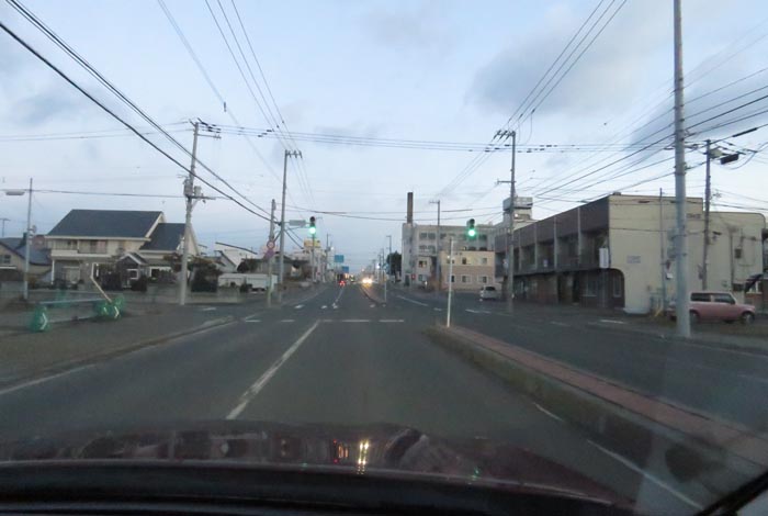南岸通り、野付牛自動車学校前、前方はとん田通りの交差点
