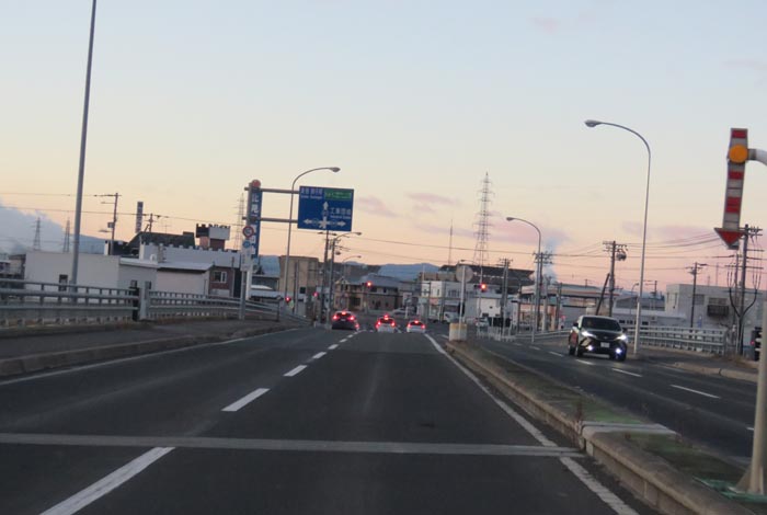 とん田通り、無加川橋を渡り錦町の南岸通り交差点