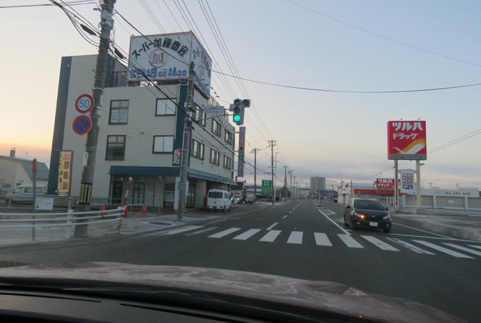 とん田通り、北見中央病院から南大通り交差点方向