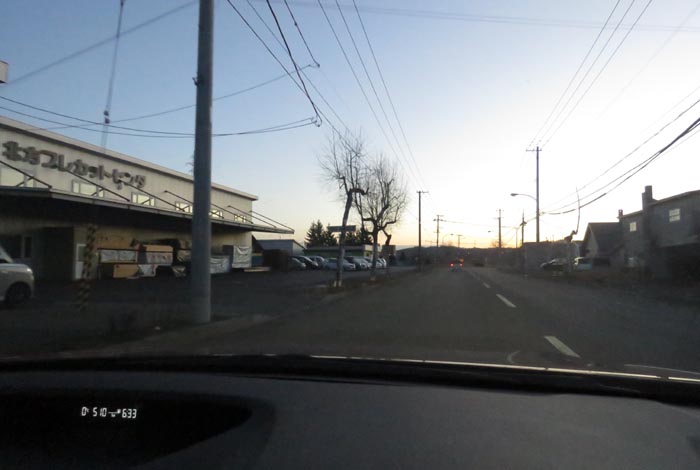 末広町の南岸通り、西4号線バス停前から野付牛自動車学校方向