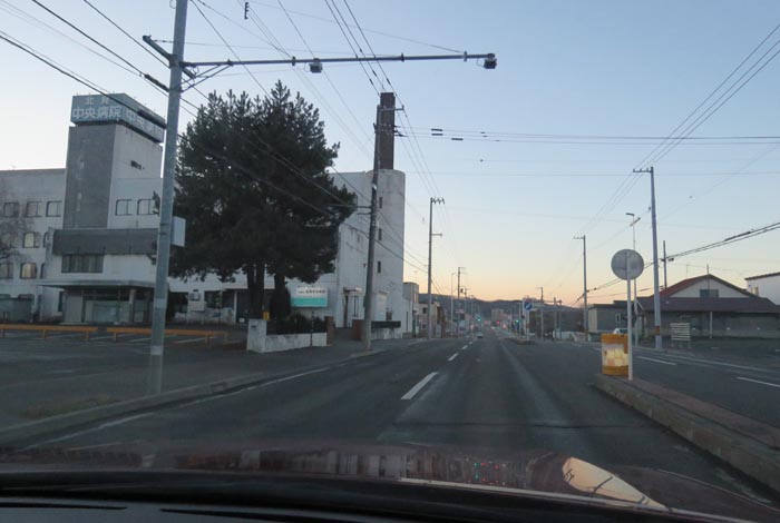 午前6時50分、西3号線とん田通りの北見中央病院横から無加川橋方向