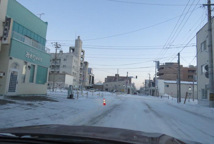 午前6時50分、国道39号、北1条通り交差点