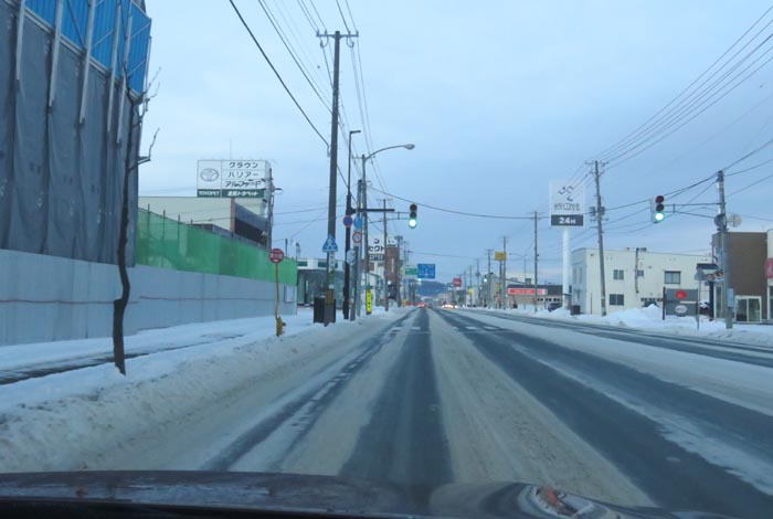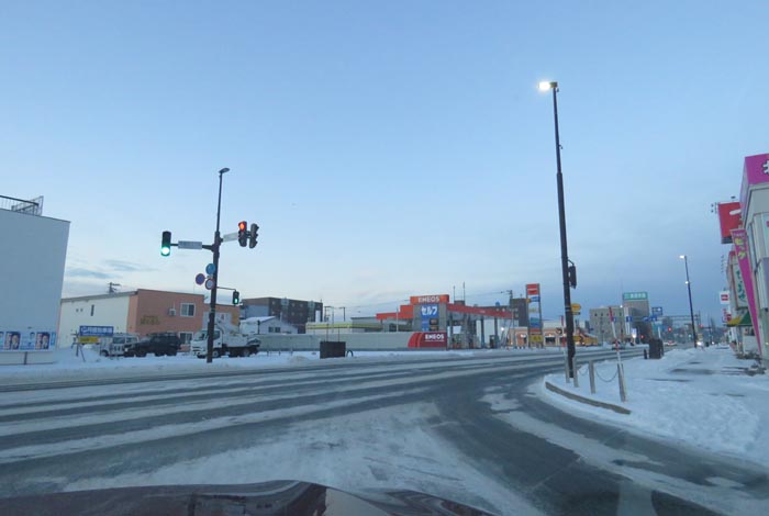 午前7時00分、北4条通りの国道39号交差点を右折で緑園通り方向