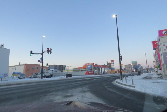 午前6時50分、北4条通りの国道39号交差点を右折で緑園通り方向