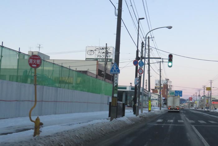 午前6時50分、北4条通りの国道39号交差点を右折で緑園通り方向