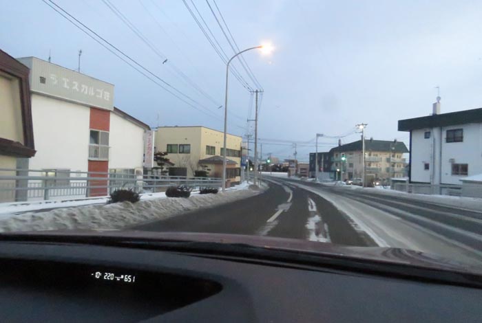 末広町の南岸通り、西4号線バス停前から野付牛自動車学校方向