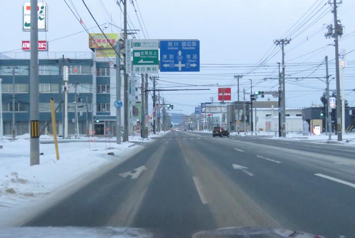 国道39号、北見トヨペット前からとん田通り交差点方向