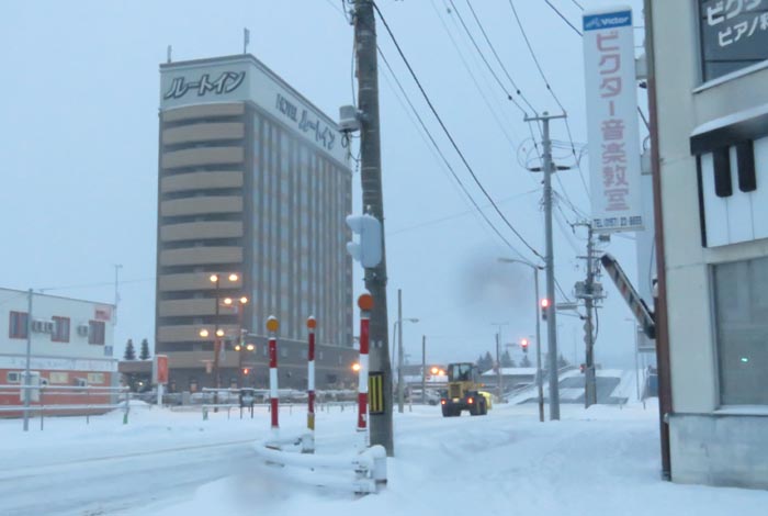 午前7時00分、国道39号、北1条通り交差点