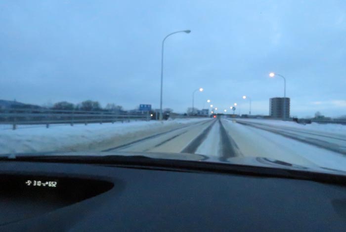 午前6時50分、西5号線、前方は南岸通りの交差点