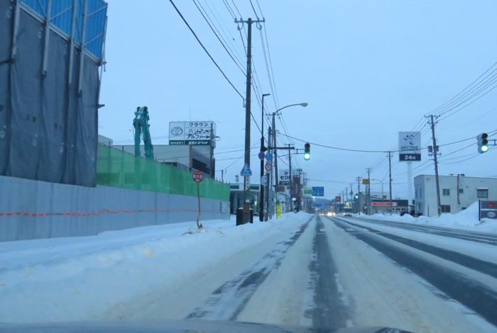 午前6時50分、北4条通りの国道39号交差点を右折で緑園通り方向