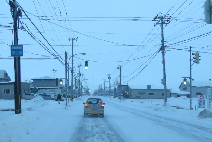 午前7時10分、南岸通り、野付牛自動車学校前から無加川町方向