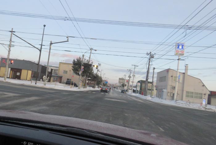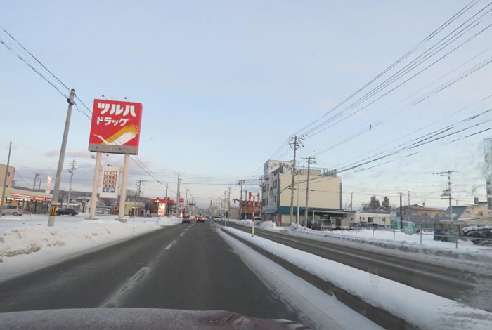 末広町の南岸通り、西4号線バス停前から野付牛自動車学校方向